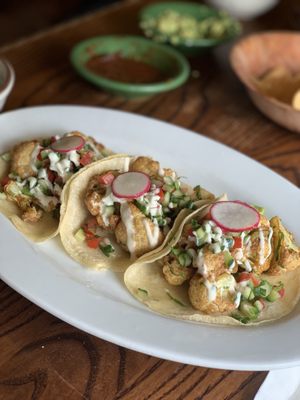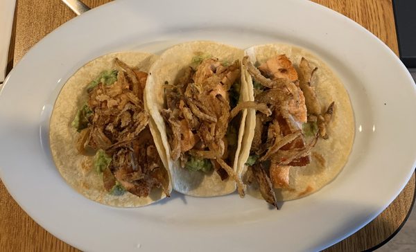 Spoon on any remaining sauce from the bottom of the bowl of slaw. Fish tacos are a favorite quick and easy weeknight meal. Grilled mahi mahi, jicama slaw, avocado crème. Enjoy outdoor seating at our scenic location. I'll have on wheat tortillas any day.